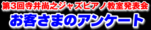 ジャズの「発表会」というものは初めてで、非常に楽しかったです。普段はプロのライブ等しか生で人の演奏を聞きに行きませんが、非常に新鮮でした。圧倒される演奏がたくさんあった様に思います。 1.あなたのお名前は?(本名でなくても可)