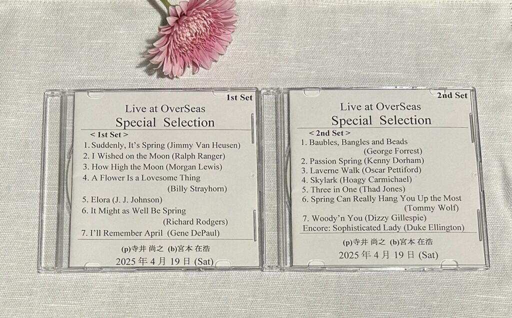 11/29におこなわれた寺井尚之(p)+宮本在浩(b)デュオ“Special Selection”のCDができました。