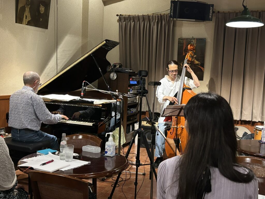 中秋の名月が近づき、酷暑も少し緩んできた大阪、寺井尚之(p)+宮本在浩(b)デュオ“Special Selection” 、今夜の2nd Setは、月に因んだ名曲を並べ、風雅なお月見の心をデトロイト・ハードバップで表現。国際的なお客様たちも一緒に、観月の宴を楽しみました。
