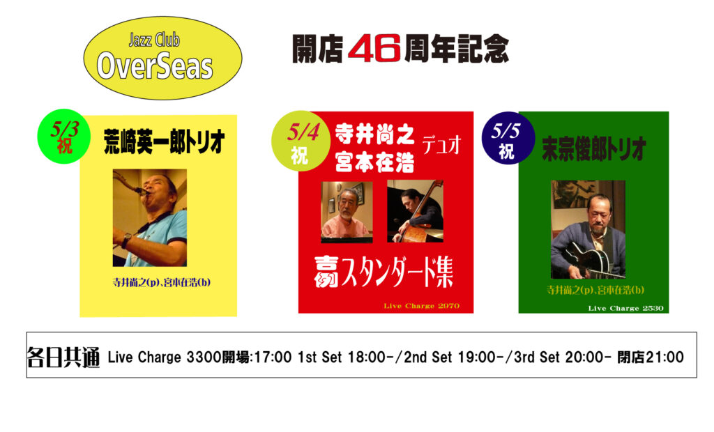 今週のご案内:寺井尚之(p)+宮本在浩(b)デュオ“Special Selection”5/17(土)に