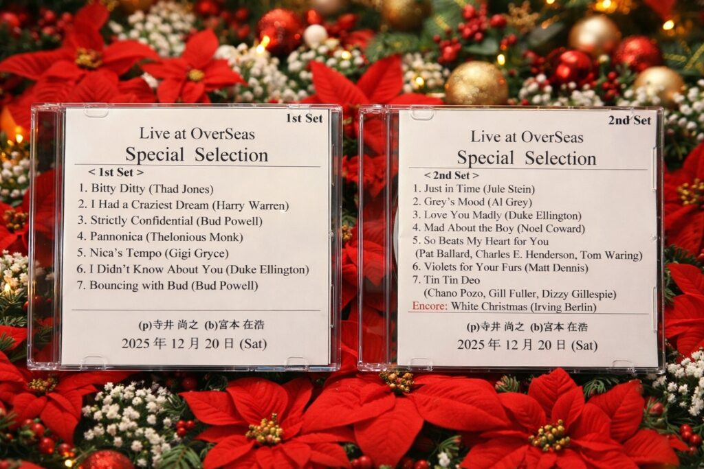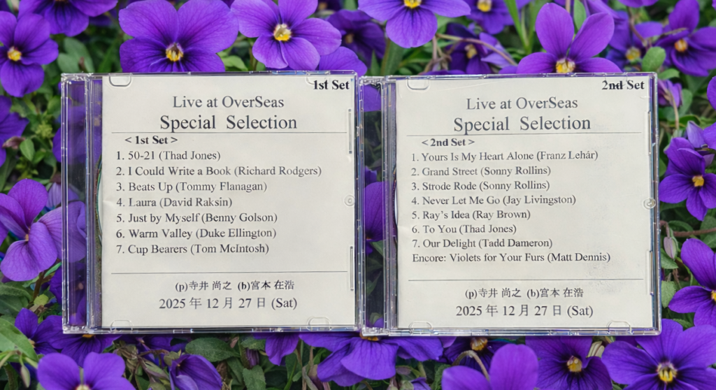 2025年のOverSeasを締めくくる寺井尚之(p)+宮本在浩(b)デュオ“Special Selection”の演奏(12/27開催)がCDになりました。